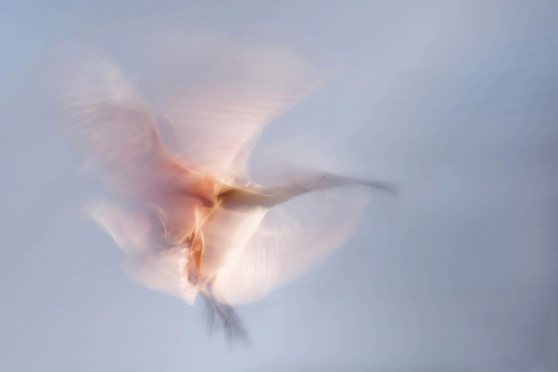 Photographie de spatule rose réalisée en pose lente.