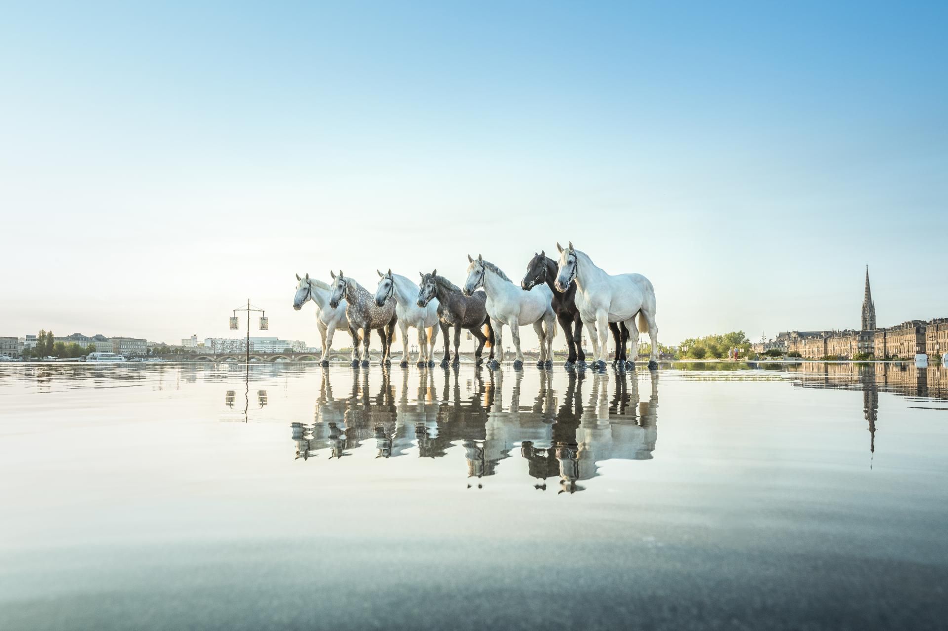 Pour bien comprendre que cette image n’est pas juste une photo posée, il faut se dire qu’elle a été réalisée avec une fenêtre de déclenchement très brève. Du soleil qui s’est levé bien plus vite que je m’y attendais, à la foule qui passait derrière, réussir à synchroniser chaque équidé dans l’expression de ses oreilles dressées; jusqu’au positionnement de chaque cheval qui un pas en avant, l’autre qui recule, tandis que ce dernier se tourne. Malgré la grande discipline que possèdent ces chevaux, ils restent des êtres vivants tels des enfants sur une photo de classe : un peu dissipés, regardant ailleurs. Et pourtant ils dégagent ensemble une force incroyable. Cette image est un couronnement, une réussite de tous ces efforts déployés au long de ce projet. Elle est un écrin. Nullement préparée, improvisée et proposée par les chevaux.