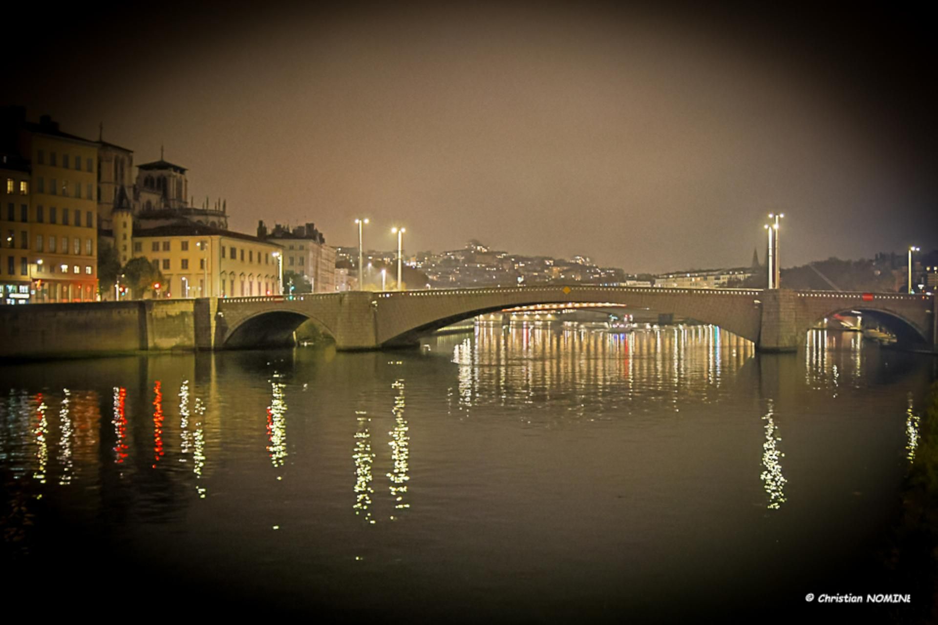 Le pont Bonaparte, sur la Saône, à Lyon, la nuit