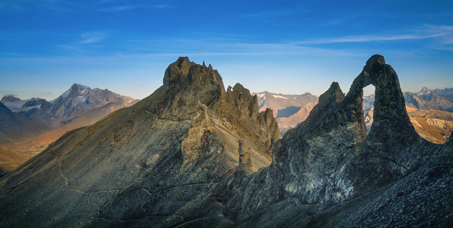 Although it emerges from a lunar landscape, the Aiguille Percée is surprisingly reminiscent of the Hoggar, in Algeria near Tamanrasset, where volcanoes rise to heights of over 3,000m. To reach the Aiguille Percée (2,700m), you need to climb a two-and-a-half-hour loop from the Palafour chairlift.