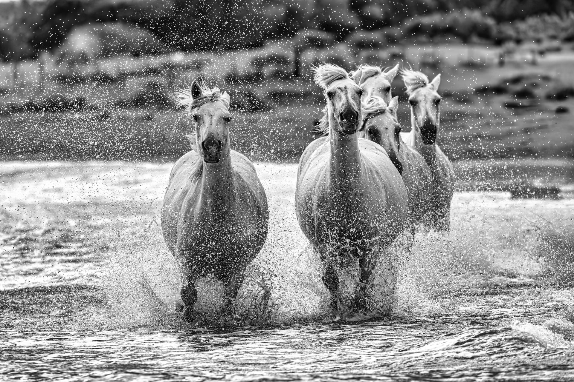 Noir et Blanc Bords de mer France Animaux Plage Nature Camargue