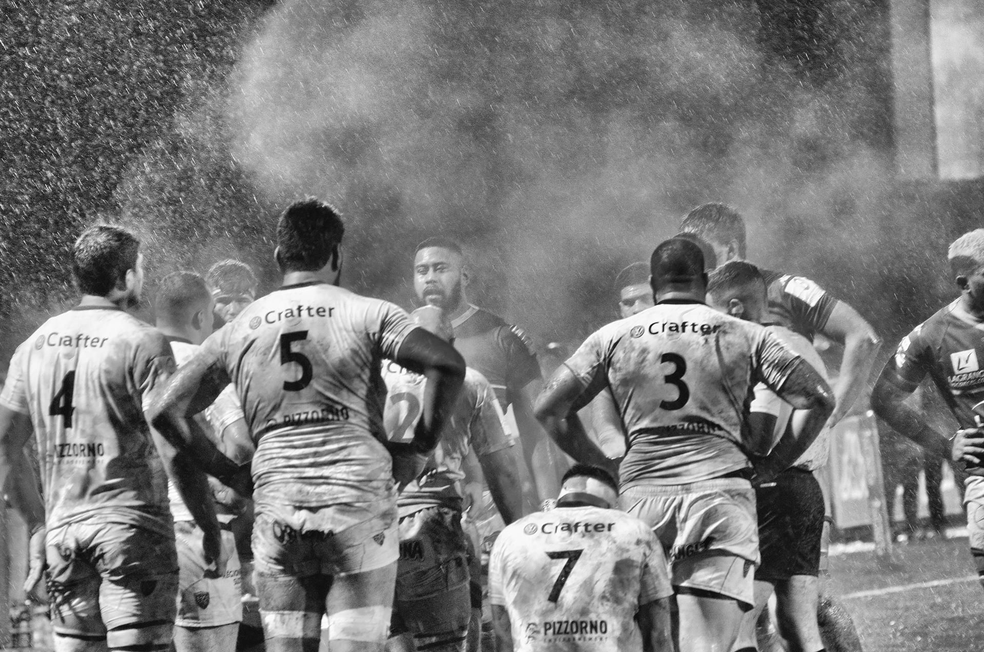 Sous la pluie et le froid, les équipes se mettent en place pour l'entrée en mêlée. TOP 14 Nov 2019 : Aviron Bayonnais / RC TOULON