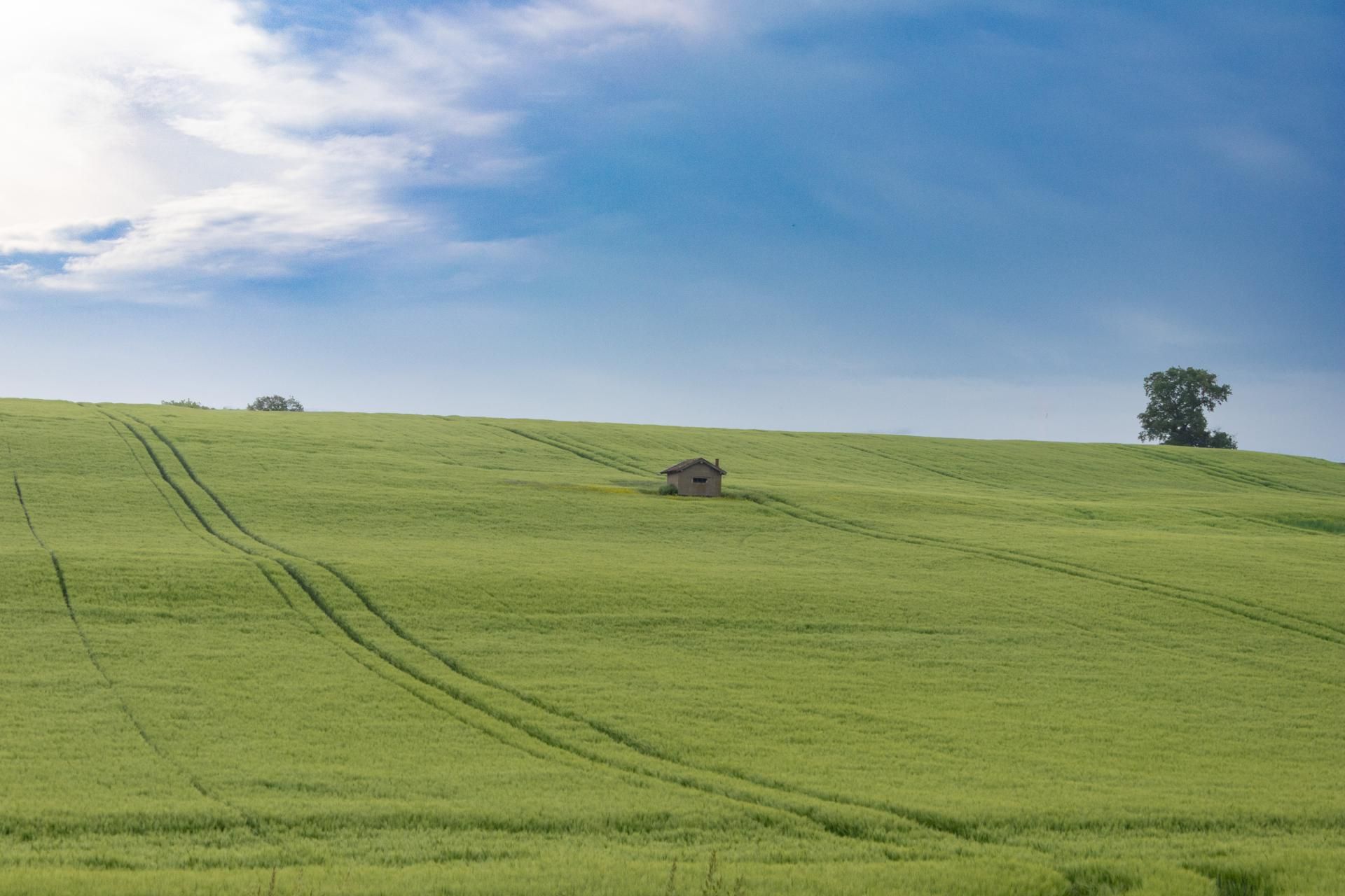 Un cabanon posé dans une prairie de l'Ain