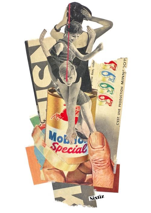 Chef opérateur caméra de profession, il aime détourner supports et visuels. La culture des années 50-60, street art, pop art et voyages sont ses sources d’inspiration et de création. Vieux journaux rétro, pin-up, formes géométriques et touches de peinture sont les fondements de sa créativité. Il propose une histoire, libre d’interprétation par chacun.