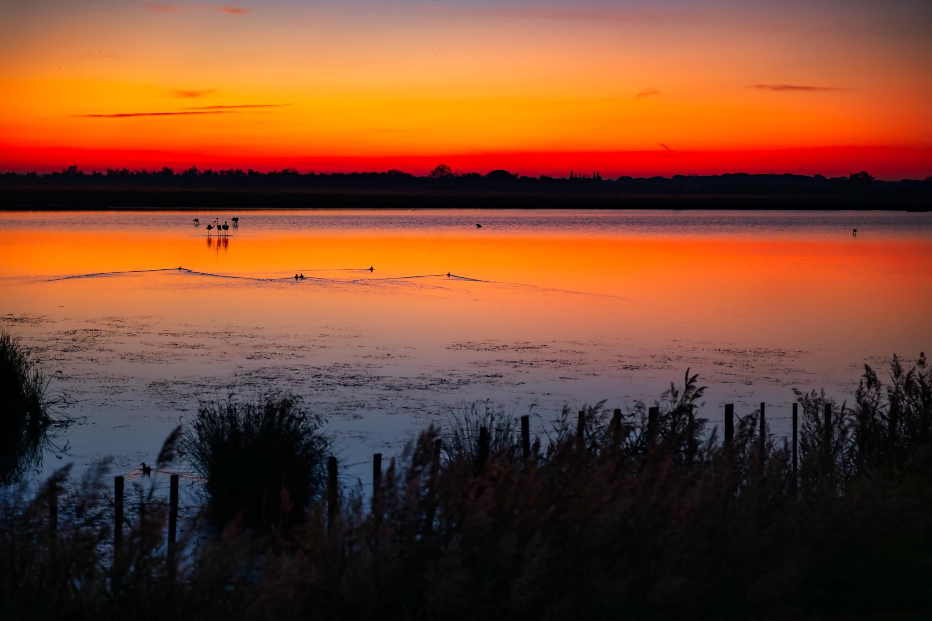 Levé de soleil en petite Camargue dans le Gard