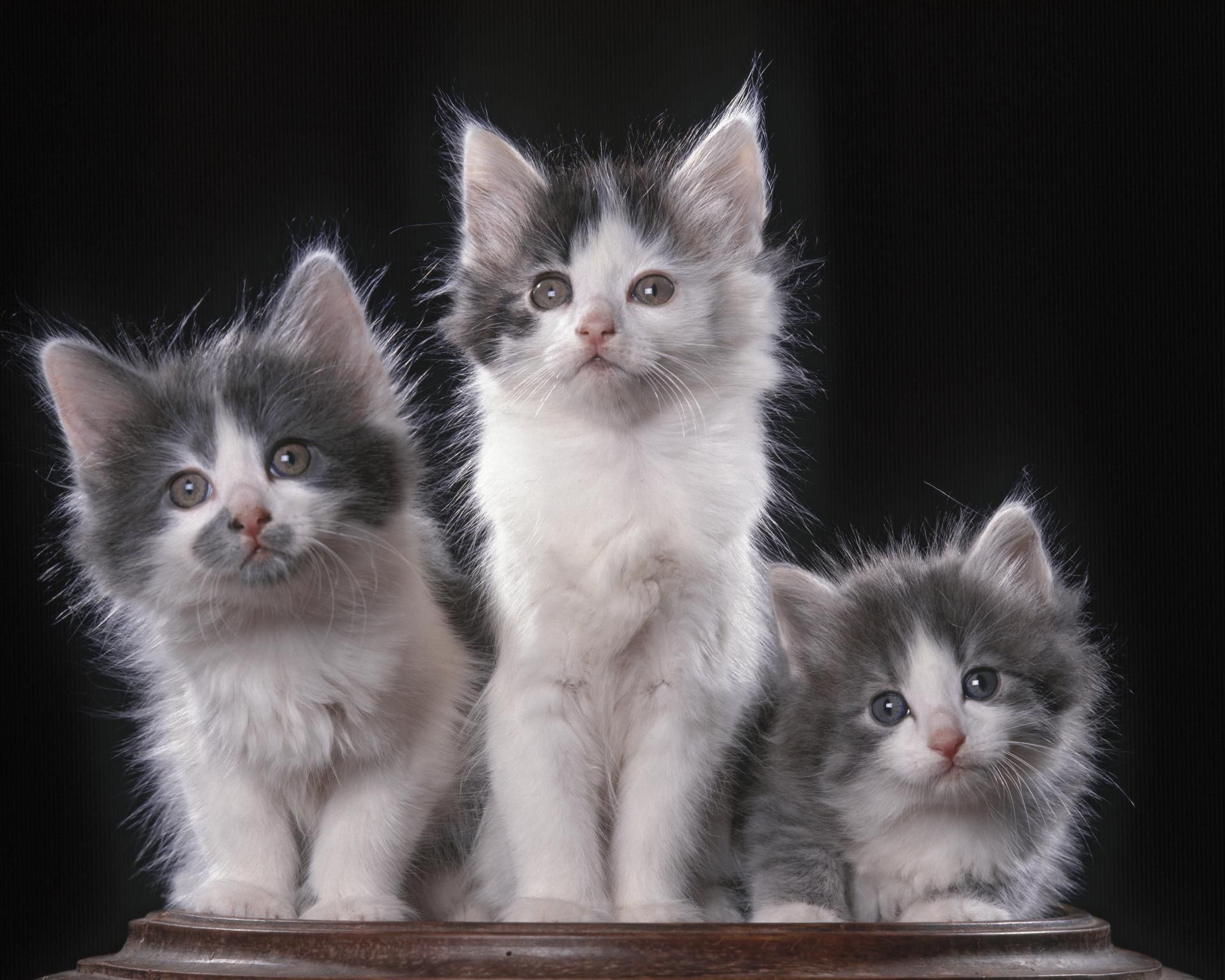 Trois Chatons des Forêts norvégiennes, Fond noir