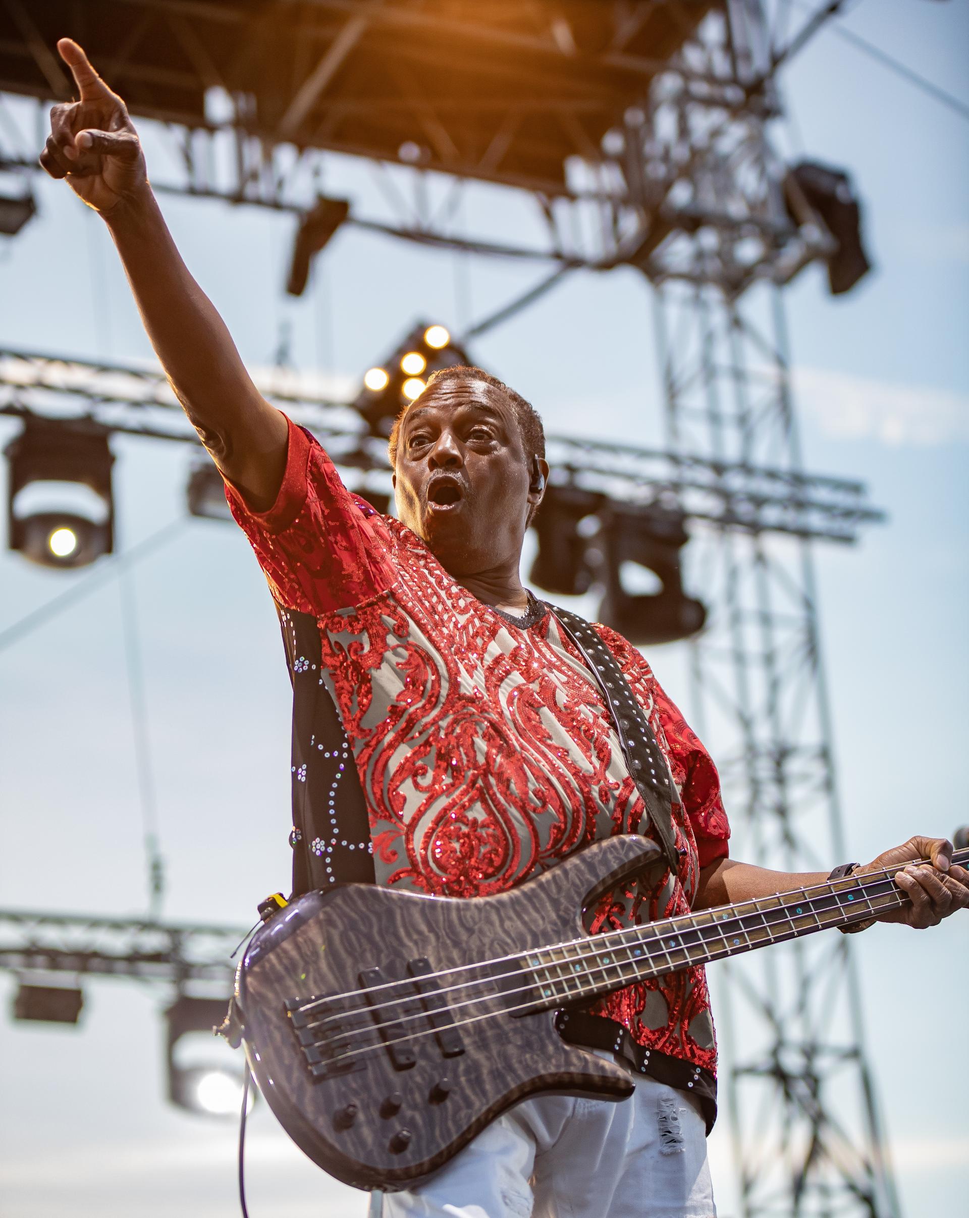 Robert "Kool" du groupe Kool And The Gang, sur la scène flottante du Enghien Jazz Festival en juillet 2019
