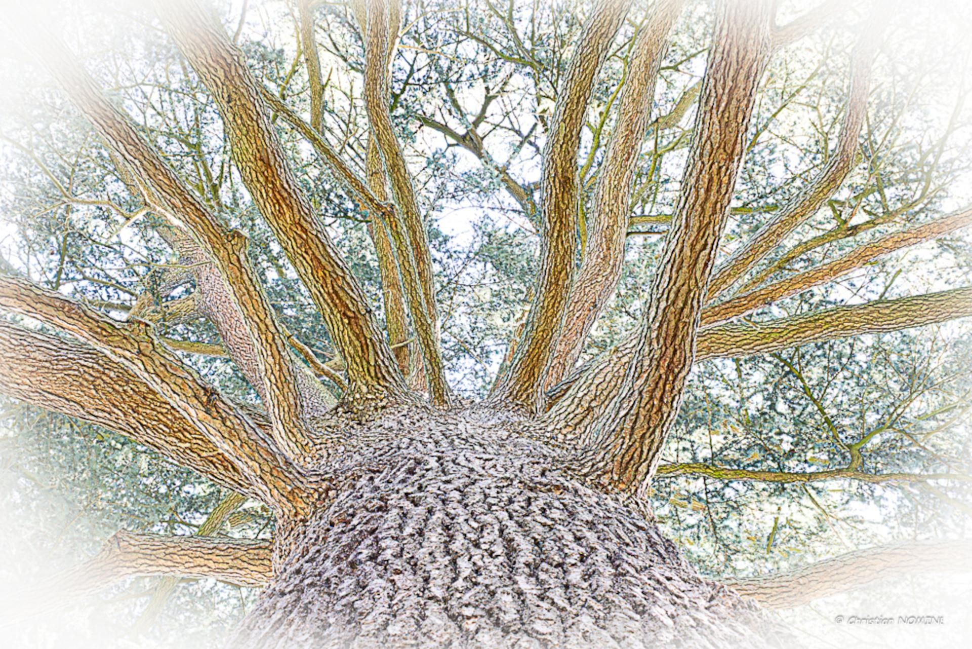 Magnifique arbre dans le parc du château de Fareins (01). Développement stylisé.